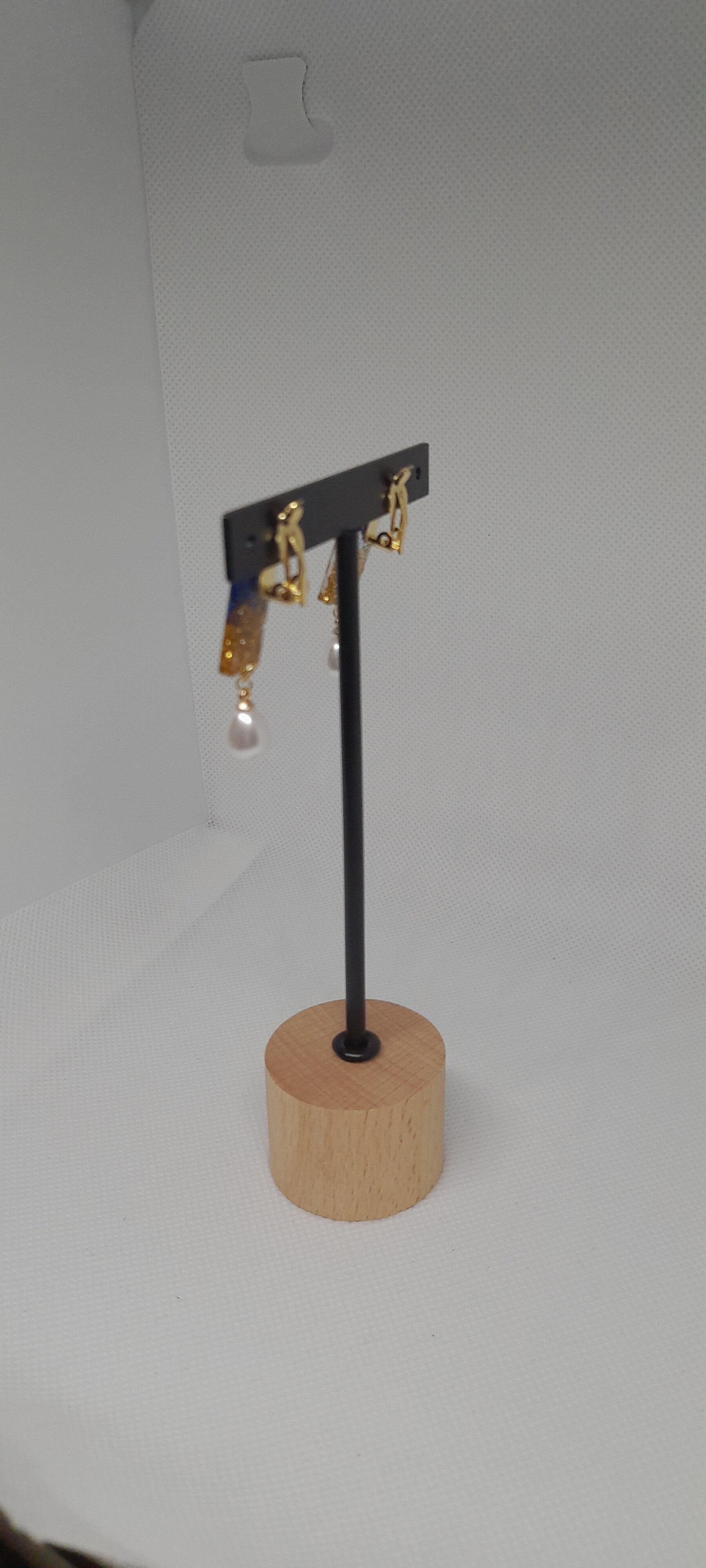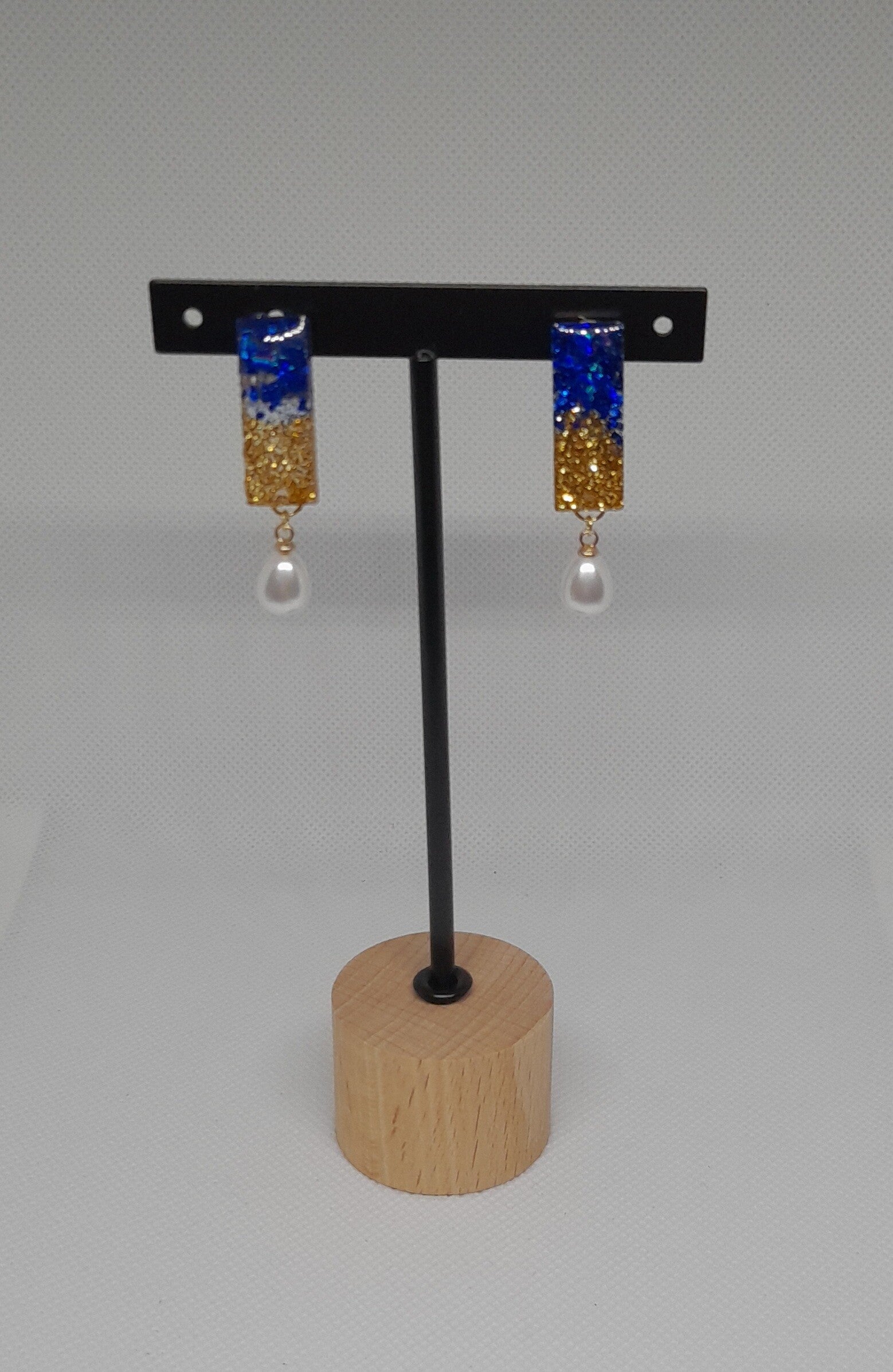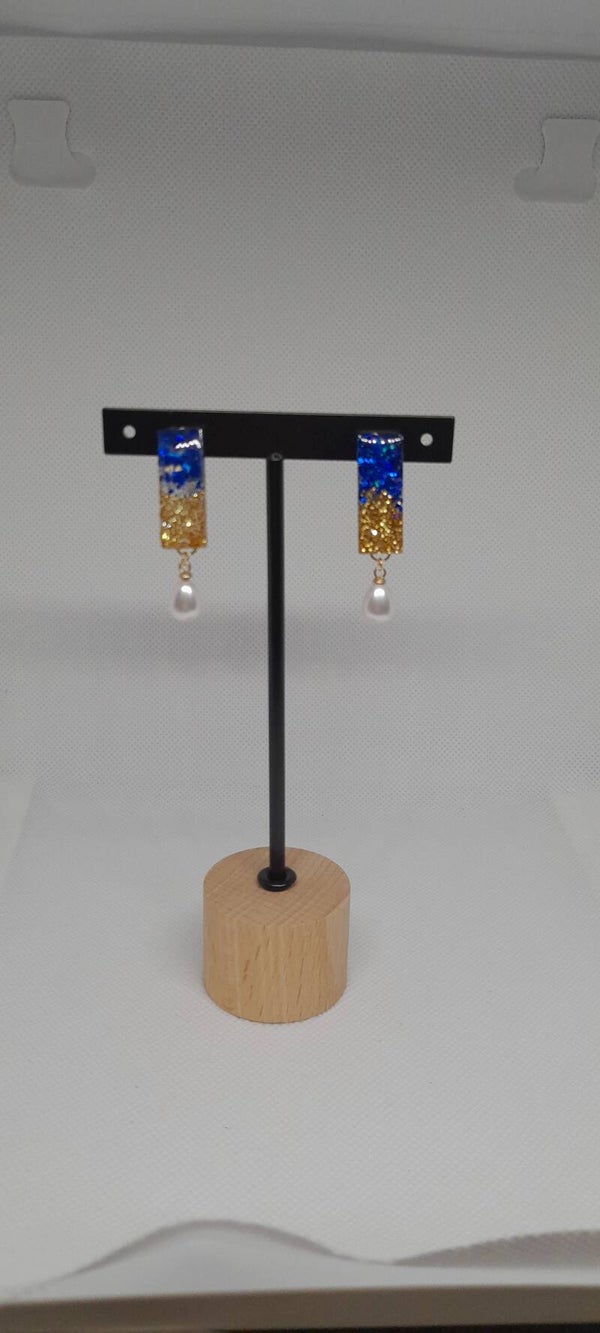 Deze oorbellen met clips combineren goudglitter en een prachtige blauwe kleur voor een opvallende uitstraling. Ideaal voor als je geen gaatjes in je oren hebt en toch graag mooie accessoires draagt. De oorbellen hebben een elegante parelhanger die een verfijnde touch toevoegt. Perfect voor een chique look, bieden ze zowel stijl als comfort.