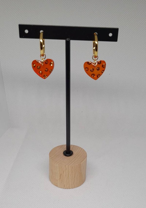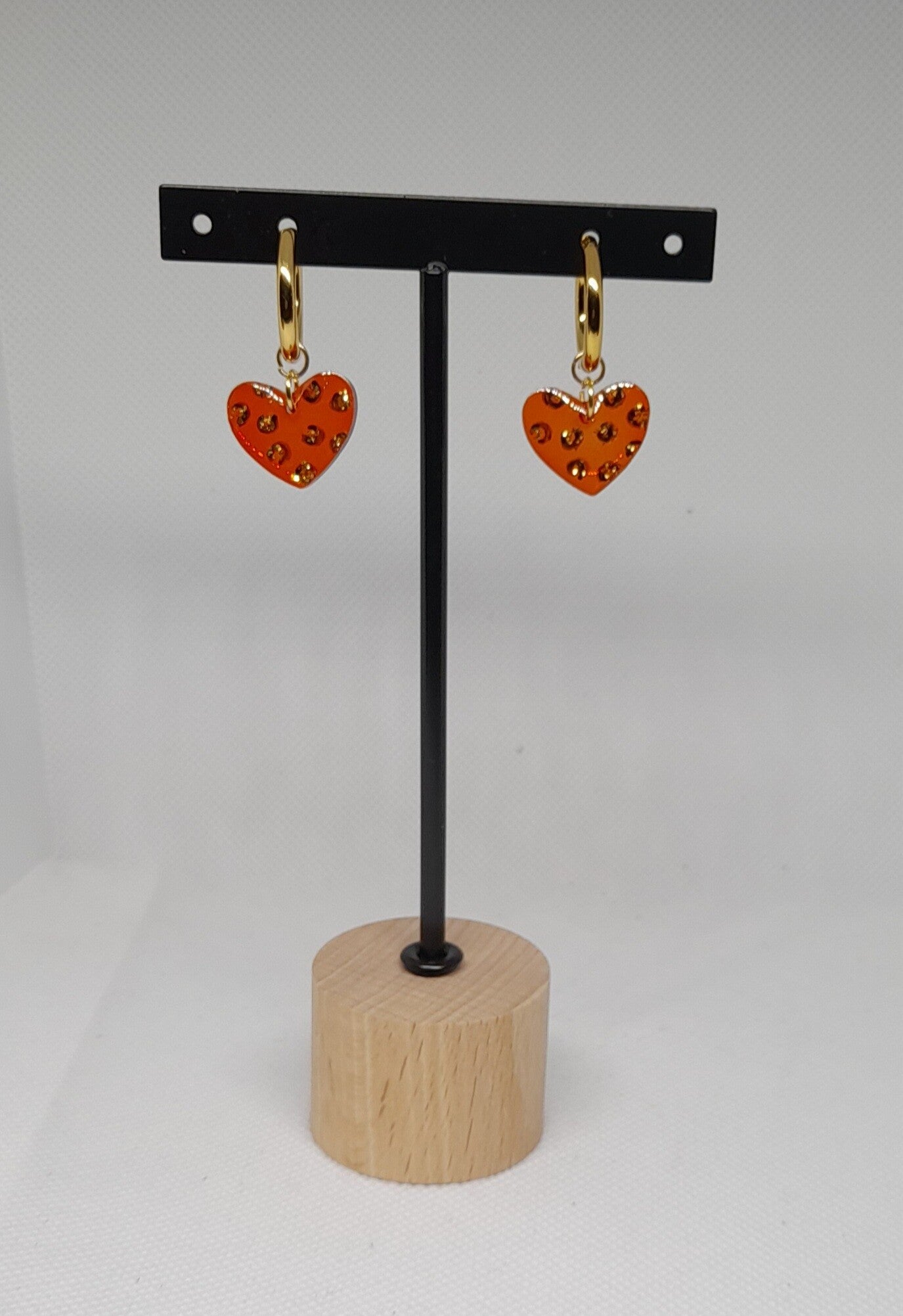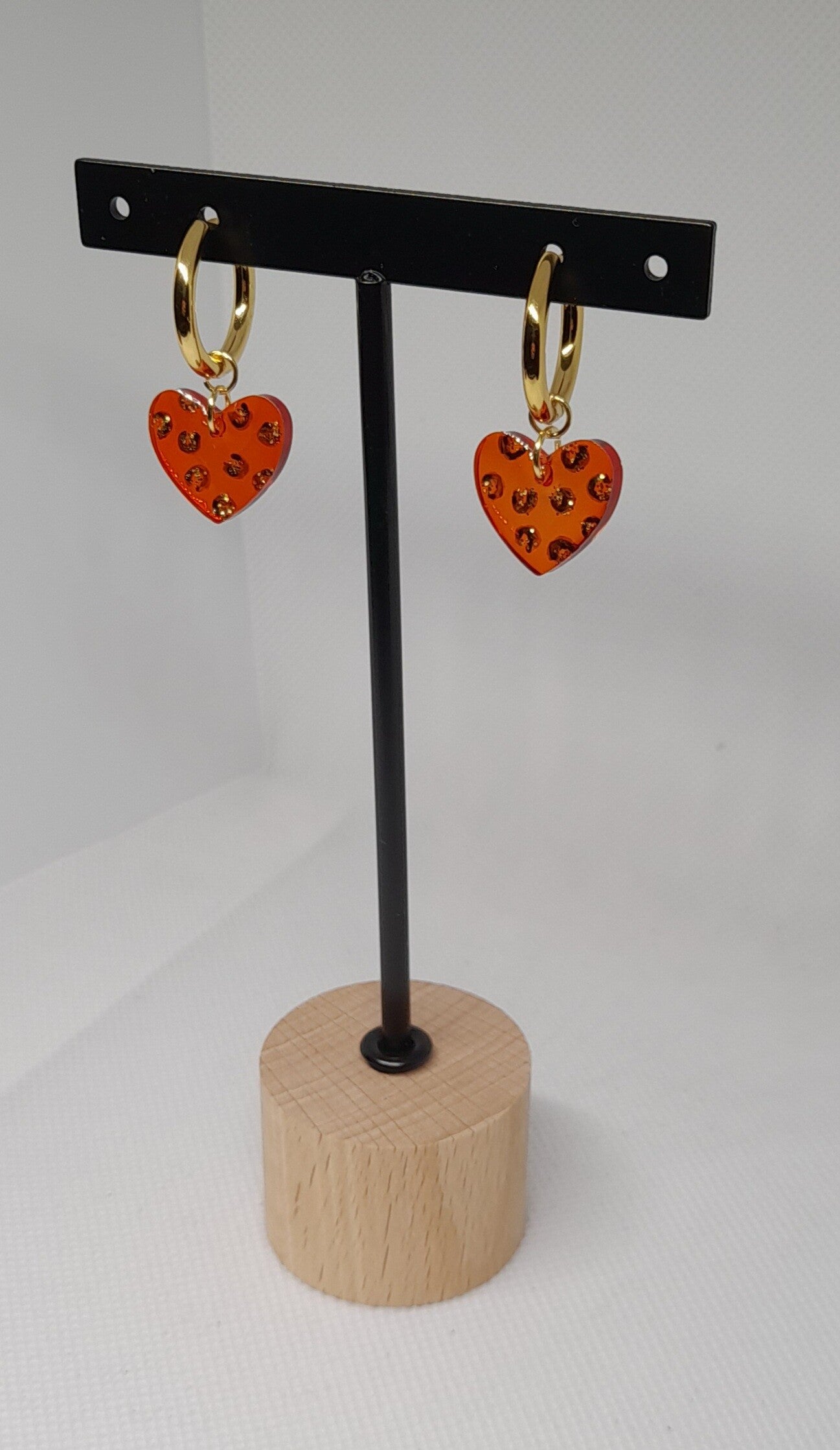 Trendy oorbellen met goudkleurige roestvrijstalen oorringen en een opvallend rood epoxy hartje met luipaardprint. Lichtgewicht, comfortabel om te dragen en perfect voor een speelse touch aan je outfit.