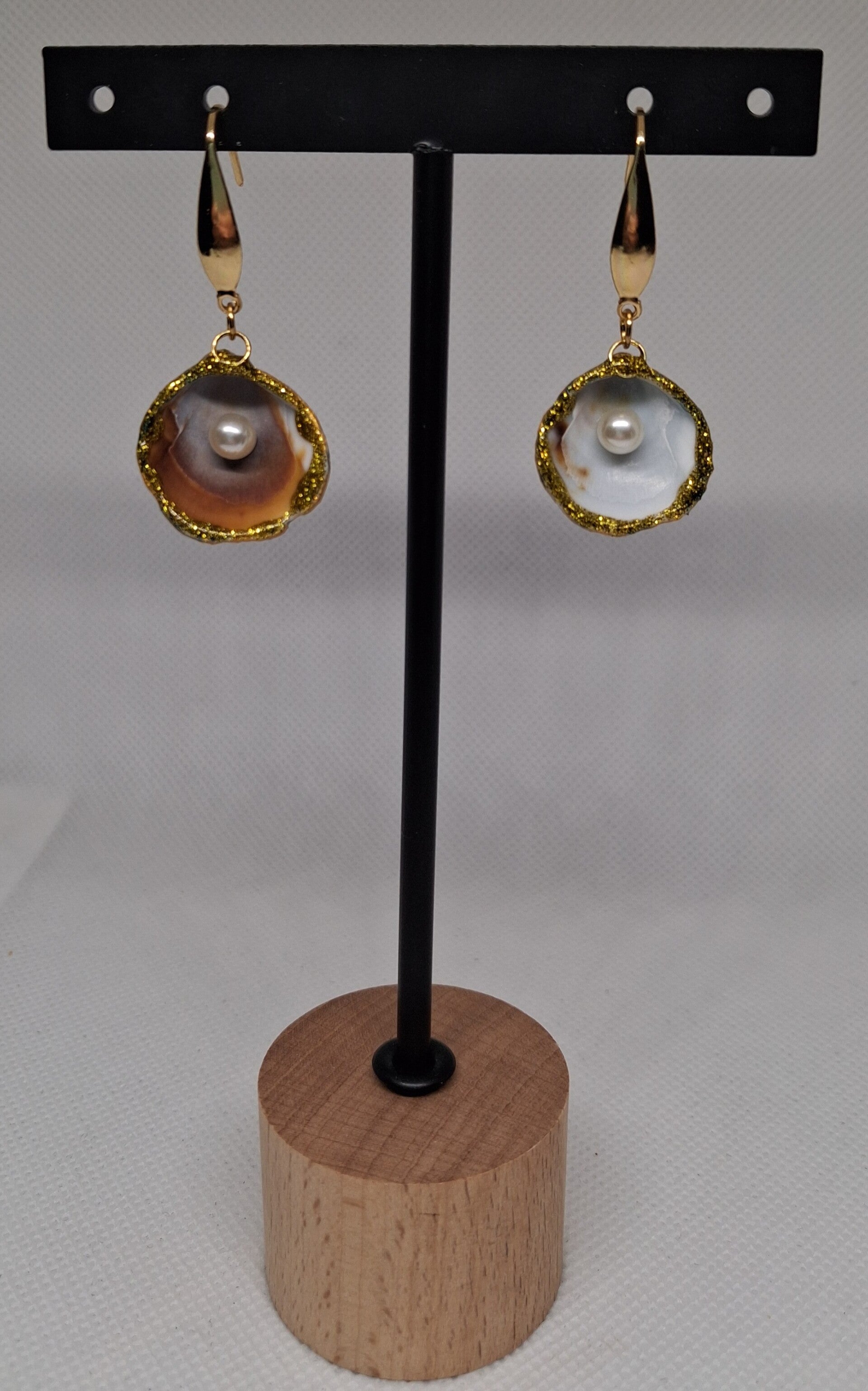 Elegante oorbellen met natuurlijke schelpjes uit Zeeland en een glanzende imitatieparel. Oorhaakjes zijn gemaakt van roestvrij staal. Lichtgewicht en perfect voor een zomerse look of een subtiel accent het hele jaar.