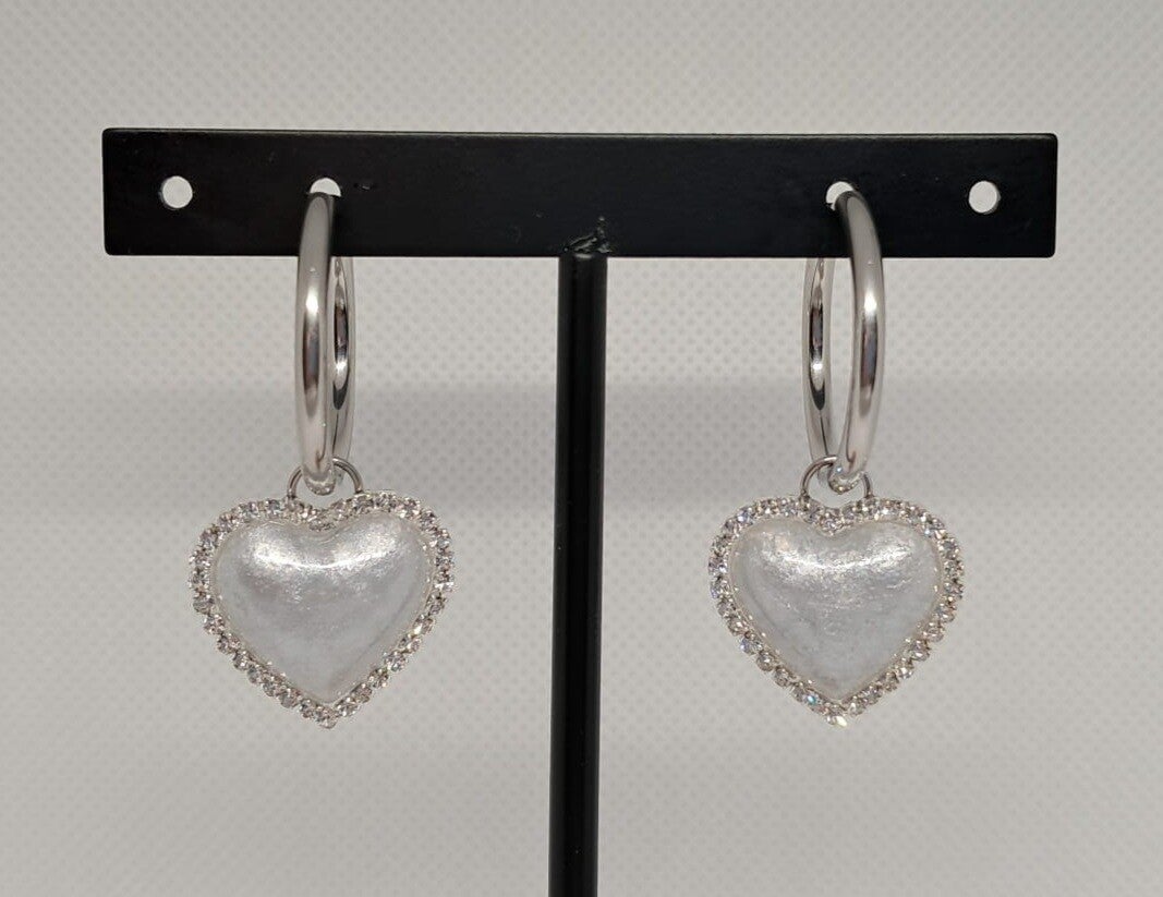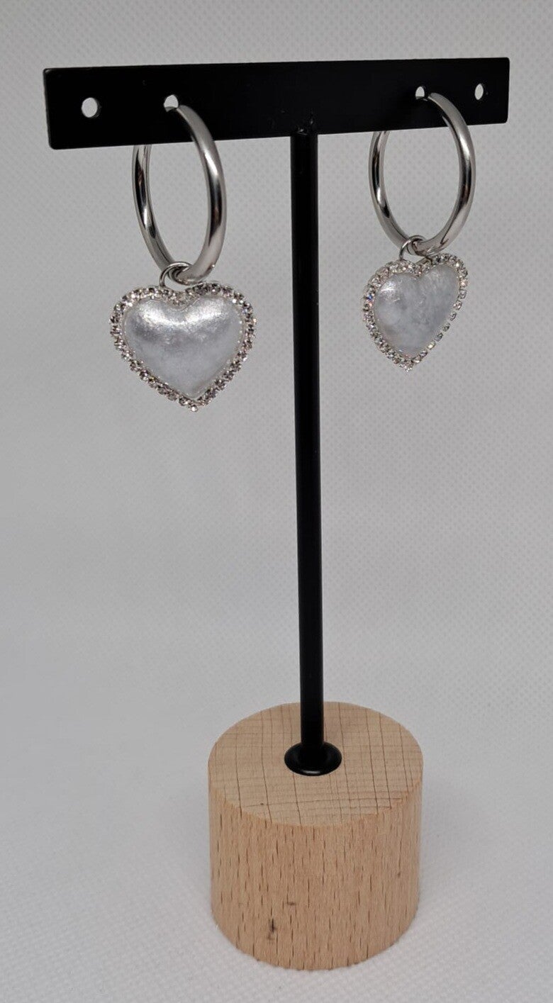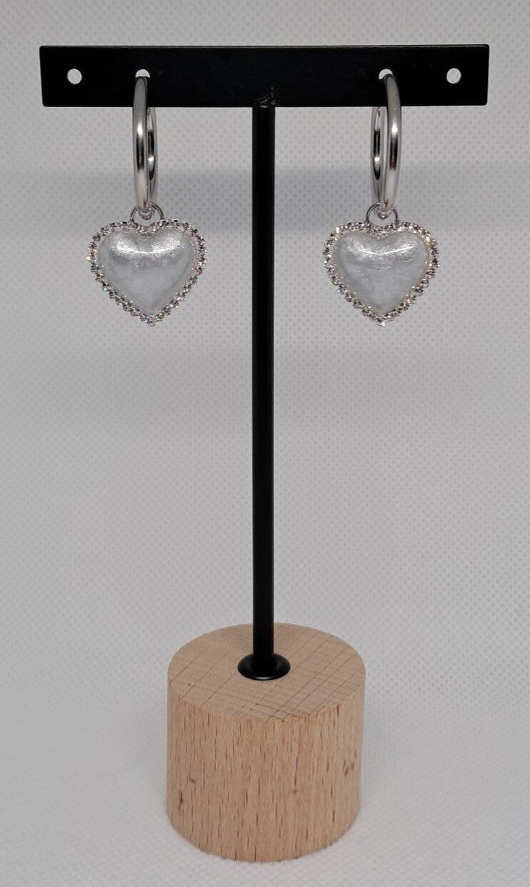 Deze elegante oorringen met hart van epoxy passen makkelijk bij elke outfit. Het hart is omlijst met strass steentjes en heeft een parelmoerkleur.